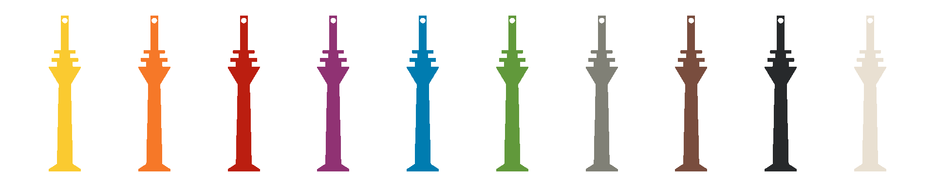 Unsere Türme sind in den verschiedenen RAL-Classic Farben erhältlich. Von Dahliengelb über Orientrot bis Azurblau. Jede Farbe ist schön! Gedreht auf CNC-Maschinen, pulverbeschichtet von Meisterhand. Qualität ist uns wichtig.